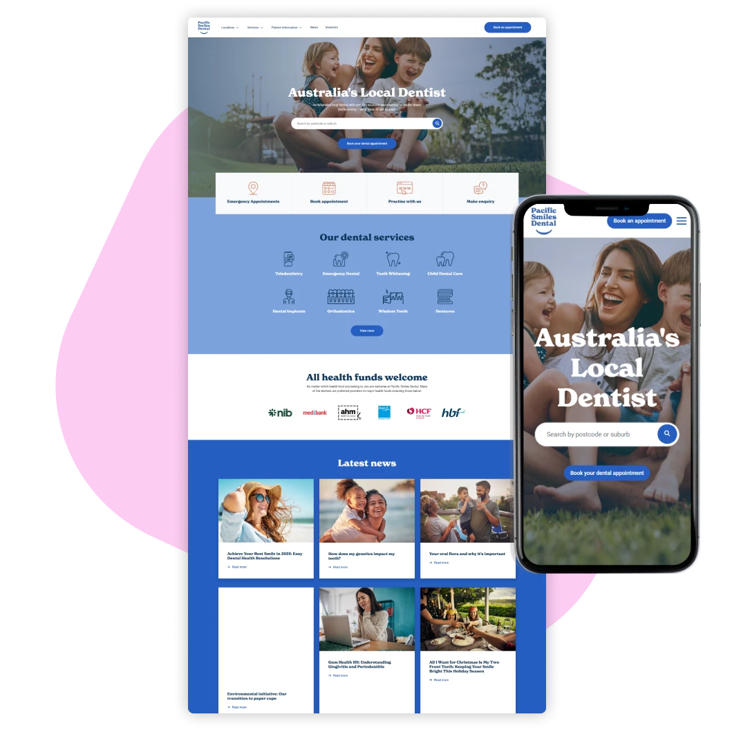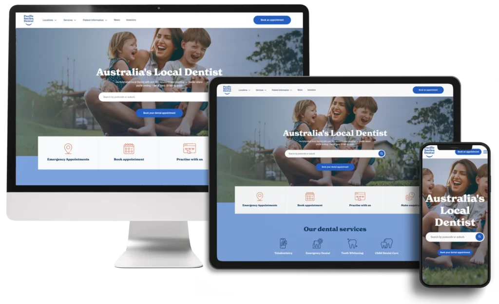 Pacific Smiles Dental, one of Australia’s leading dental care providers, required a website that effectively communicated their comprehensive range of services while attracting new patients. They needed an online platform that highlighted their dedication to patient comfort, advanced technology, and superior dental care. The site also had to offer easy navigation for finding clinic locations and booking appointments.